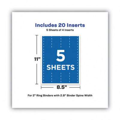 Binder Spine Inserts, 2" Spine Width, 4 Inserts/Sheet, 5 Sheets/Pack