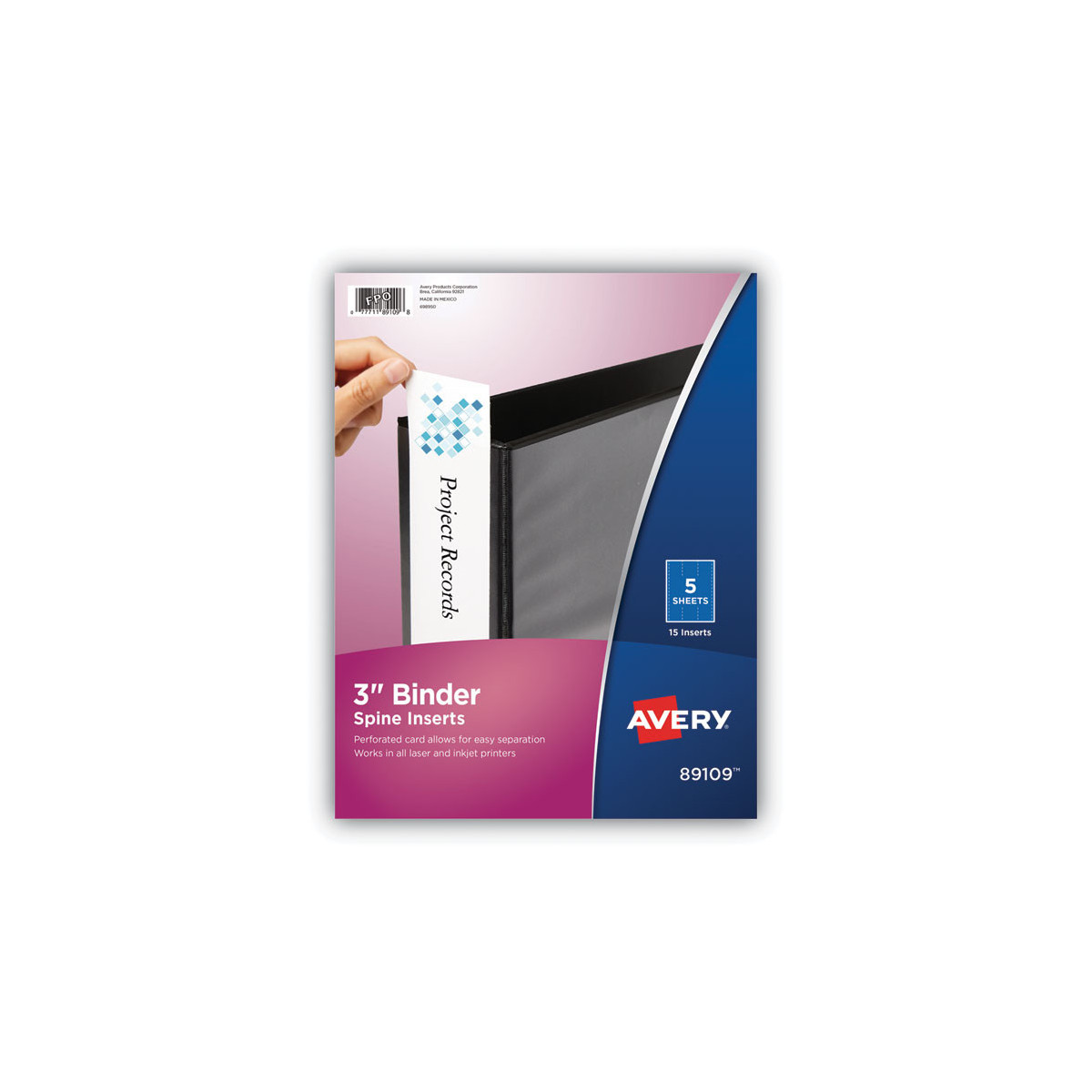 Create professional-looking spines with binder spine inserts using free templates from Avery Design & Print. Perforated cardstock allows for easy separation. Firm cardstock makes it even easier to insert each spine into a binder. 8.5" x 11" sheets for laser and inkjet printers.