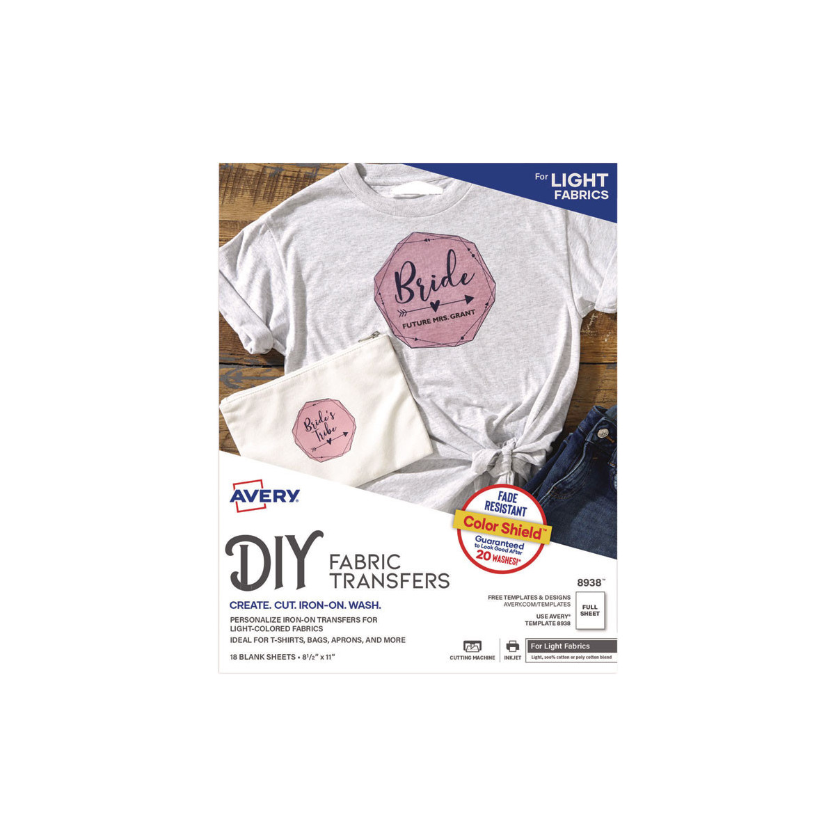 Create, personalize and customize your own fabric transfers. Ideal for t-shirts, aprons, pillowcases, bags, tank tops, promotional items and more. Crack-free transfer's color lasts longer so you can enjoy your creations even more. All you need is a computer, a printer that allows you to flip images and a household iron. For use on 100% cotton or cotton poly/spandex blend fabrics. Easy to customize with complimentary designs and templates from Avery® Design & Print. For inkjet printers.