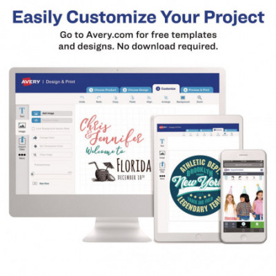 Design and print fabric transfers. Ideal for t-shirts, bags, promotional items and more. No cracking and color lasts longer. For use on 100% cotton or cotton poly blend fabrics. Easy to customize with complimentary designs and templates from Avery® Design & Print. For inkjet printers.
