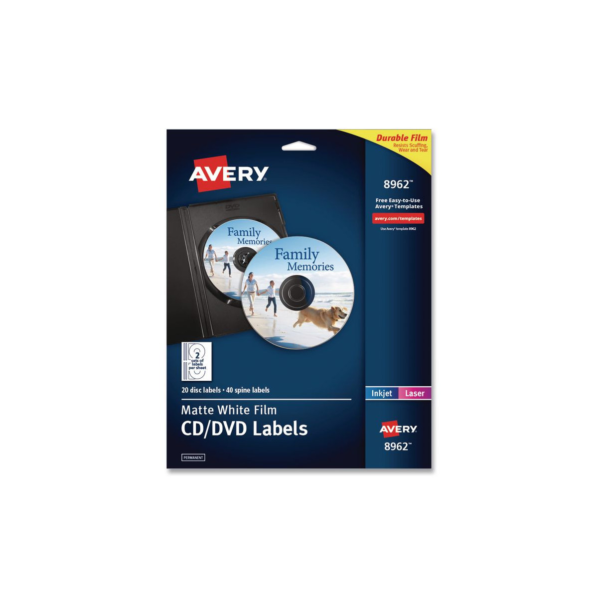 Labels are made of a special film material designed for DVDs and are guaranteed to not affect the playback of single-sided DVDs. Add colored images and text to the edge of the label. Easy to customize with free designs and templates using Avery® Design & Print. 8.5" x 11" sheets for laser or inkjet printers.