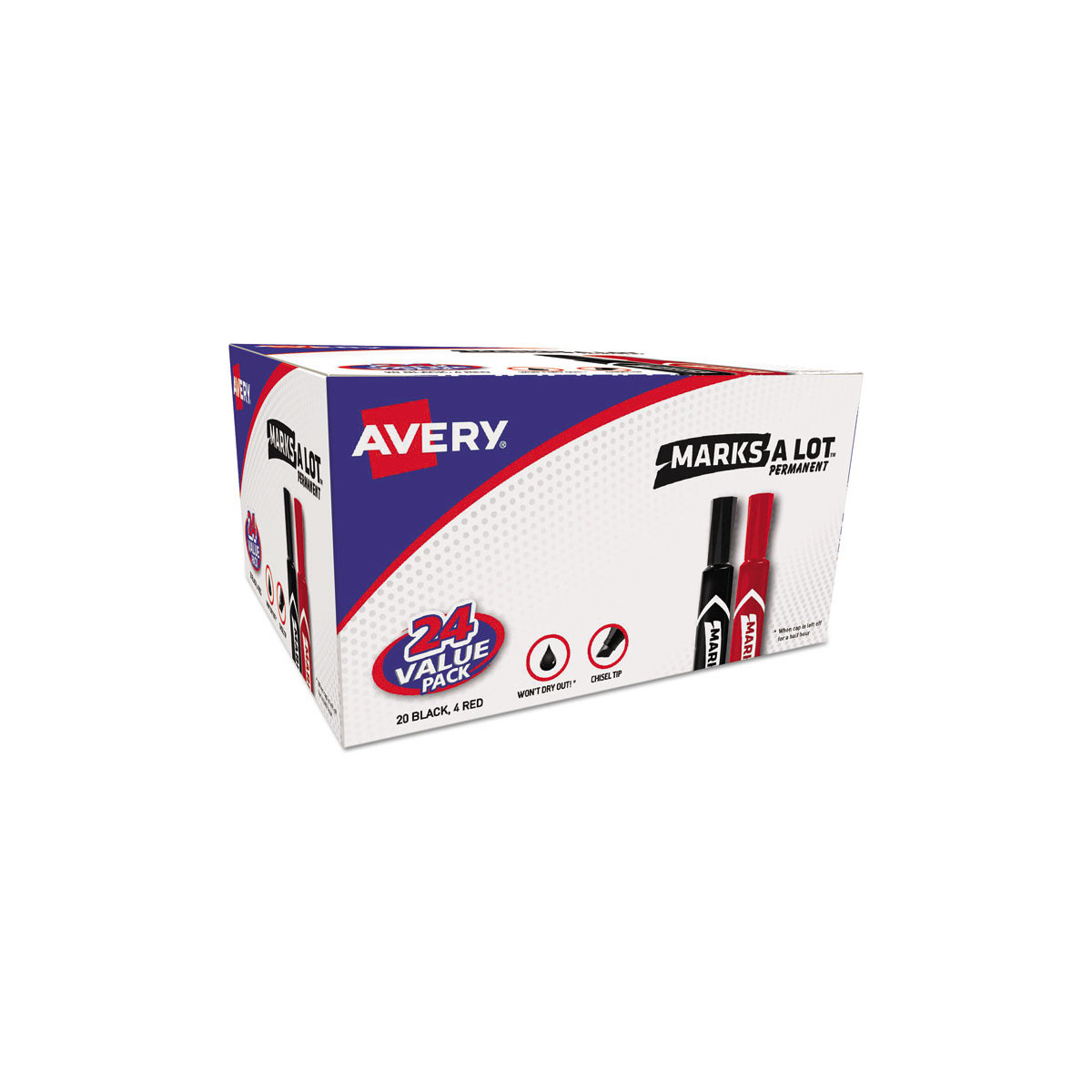 MARKS A LOT Regular Desk-Style Permanent Marker Value Pack, Broad Chisel Tip, Assorted Colors, 24/Pack (98187)