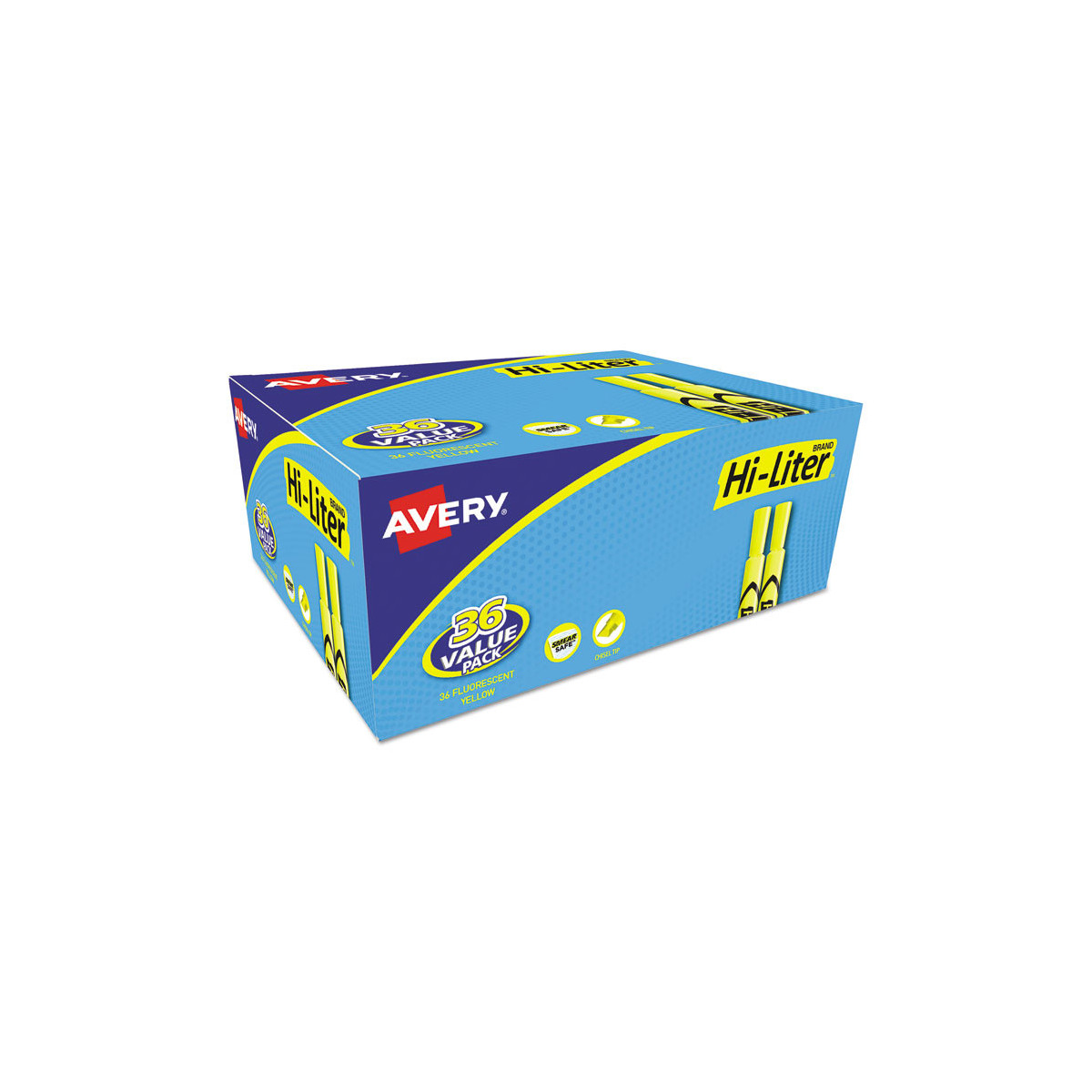 HI-LITER Desk-Style Highlighter Value Pack, Fluorescent Yellow Ink, Chisel Tip, Yellow/Black Barrel, 36/Box