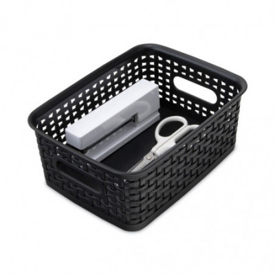 Plastic Weave Bin, Small, 10" x 7.5" x 4", Black