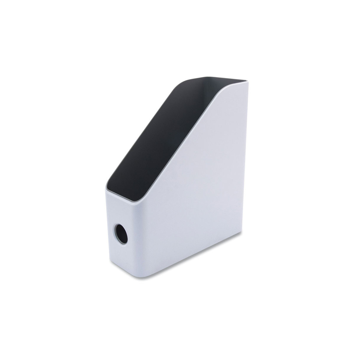 Sleek, modular filing solution keeps your trade publications and magazines organized and close at hand, but neatly out of the way. Durable, high-gloss plastic body with rolled edges features a convenient finger-pull hole.