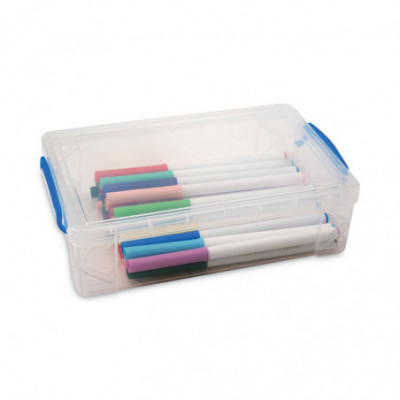 A classic companion for keeping pens, pencils, erasers, markers and a wide variety of school or office supplies organized. Transparent top, sides and bottom make it easy to see what's inside, and a snap-tight lid helps you ensure what you place inside stays inside. Stackable design also makes it easy to save space in busy classrooms.