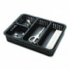 Perfect for storing a variety of office or household supplies. This sturdy plastic bin is easy to clean, features two handles for easy transportation and has a stylish design.