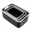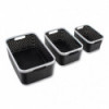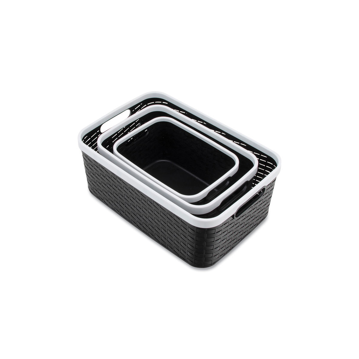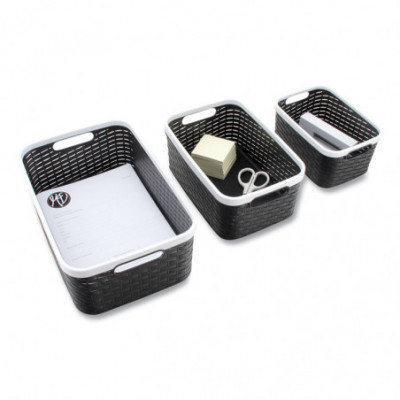 Organize your home or office workspace in style with this set of three Nantucket weave bins. The sophisticated design in multiple sizes allow you to sort your clutter while seamlessly blending in with your décor. Durable bins are great for craft supplies, paperwork, pantry or laundry items, bedrooms, and more.