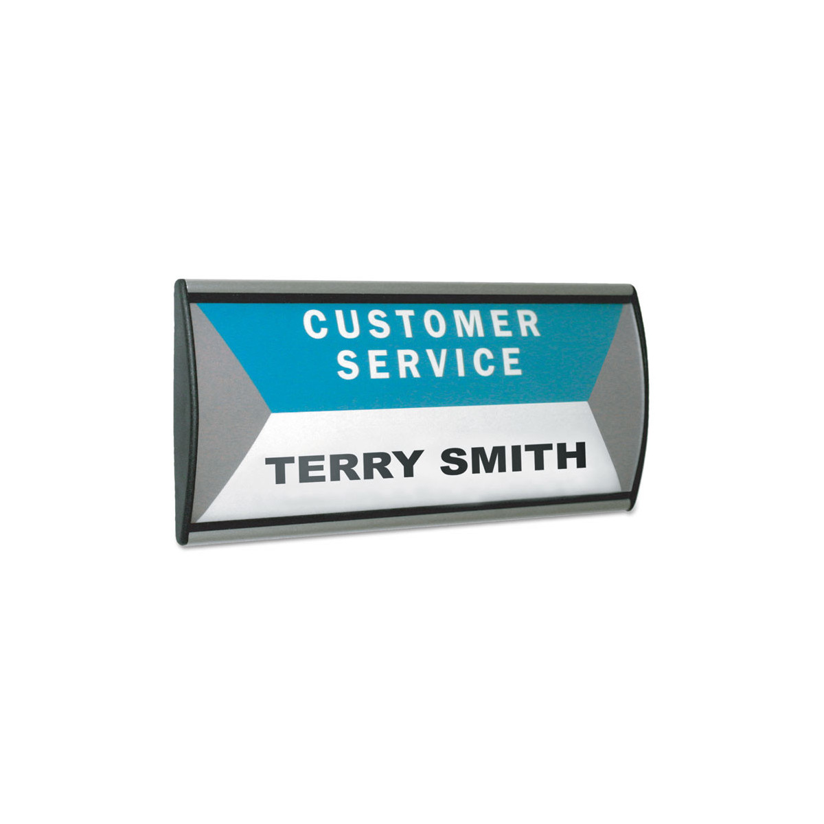 Design your own wall or door sign in just minutes with the easy-to-use "Do-it-Yourself" sign. Use web-based templates to create the customized insert. Includes double-sided mounting tape. Lightweight aluminum frame. Translucent plastic cover reduces glare and protects name plate from wear and tear. Patented design.