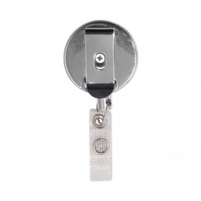 Compact, round badge reel extends for easy swiping and scanning of ID card and retracts automatically. Sliding belt clip for easy attach to your person.