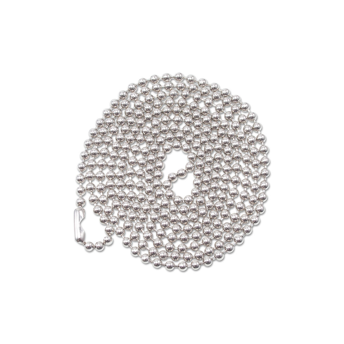 This lightweight 36" long nickel-plated beaded chain is designed with simplicity and function in mind. Strong connector to ensure constant closure. No frills or fuss, the chain easily attaches to badges and ID cards and the chain rests comfortably on your neck.