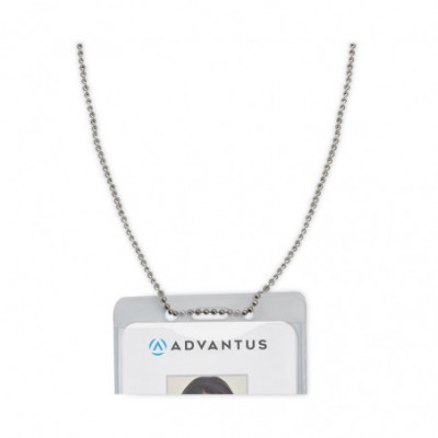 36" long nickel-plated chain has a strong connector to ensure constant closure. Designed to keep badge always in view. Rounded beads won't stick to clothing.