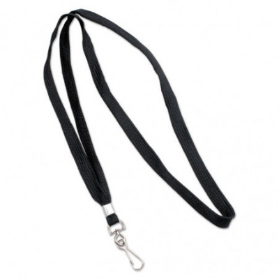 Deluxe Lanyards, Metal J-Hook Fastener, 36" Long, Black, 24/Box