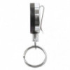 Retractable cord allows convenient scanning/swiping of cards. Instant access to badges, cards or keys. Steel link chain and nickel-plated steel split key ring.