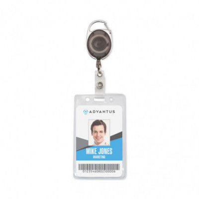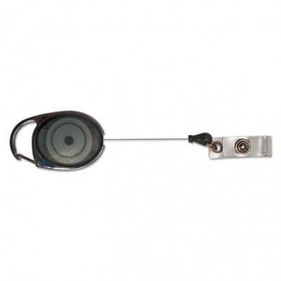 Carabiner-style clip offers a more secure connection and frees you from wearing an ID badge. Carabiner can hook onto belt loops, briefcases and purse straps. Retractable cord allows convenient scanning/swiping.