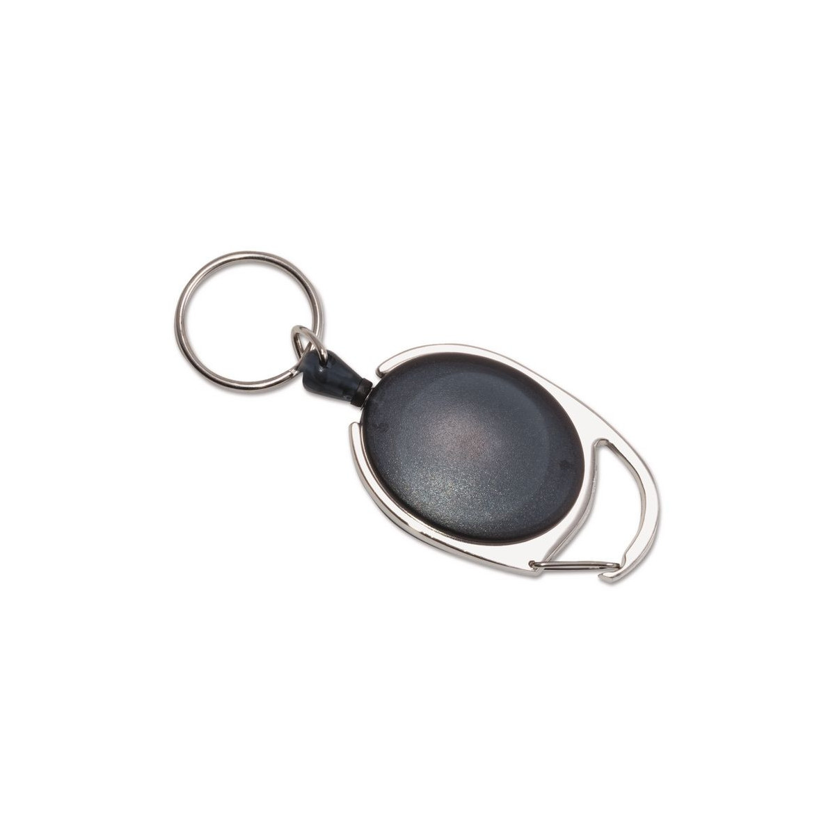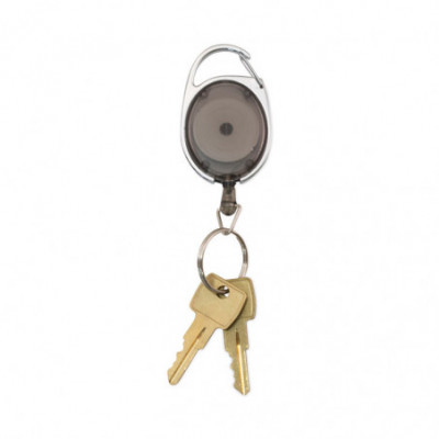 Carabiner-style clip offers a more secure connection and frees you from wearing an ID badge. Carabiner can hook onto belt loops, briefcases and purse straps. Retractable cord allows convenient scanning/swiping.