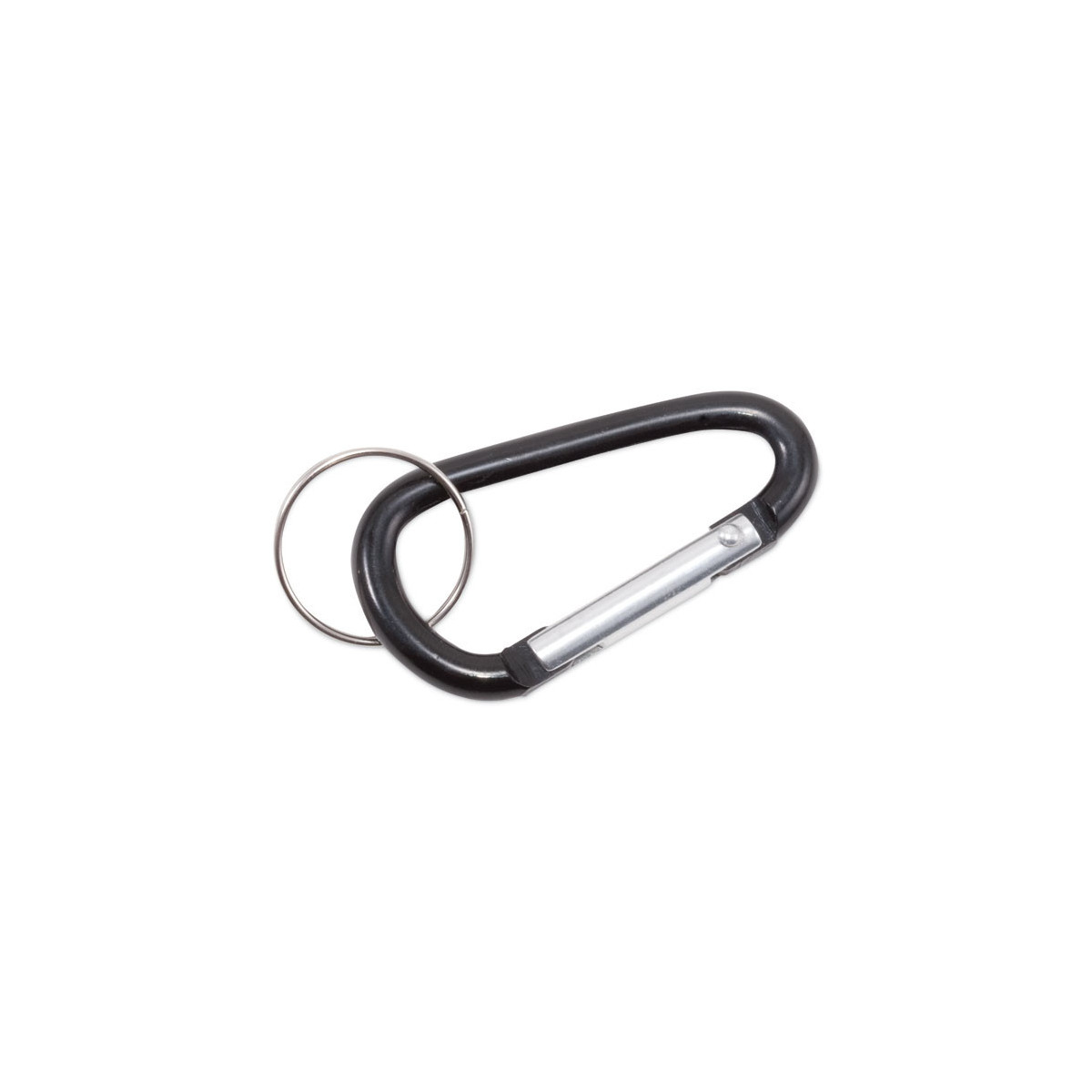 Classic D-shaped carabiner key chains made of solid aluminum. Strong spring hinge opens smoothly for attaching carabiner to bags, backpacks, belt loops, etc. Split key ring is ideal for keys, badge holders, etc. Perfect for around the office use!