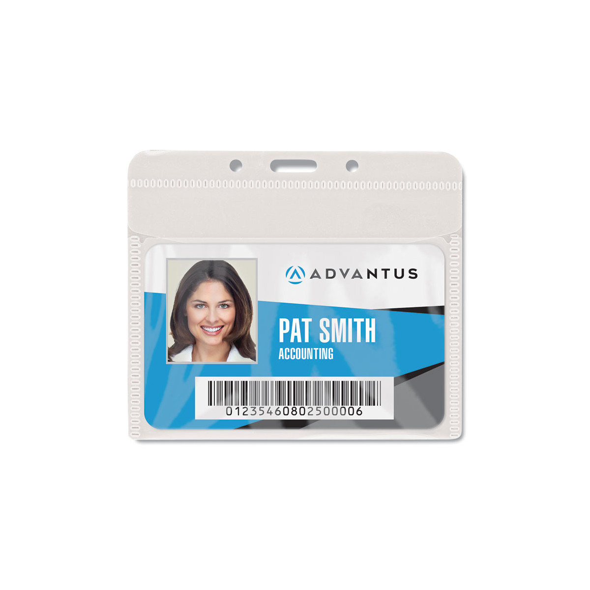 PVC-Free Badge Holders are the perfect way to keep security badges, IDs and vaccine cards clean and in good shape. Durable, polypropylene holder with clear face keeps your badges and cards visible while protecting them from daily wear and tear. Integrated top flap provides extra security-simply tuck the top flap over your badge or card to protect it on four sides. Die-cut slot and two pre-punched circular holes accommodate a wide range of lanyards, chains, split-rings, card reels and clips (all sold separately). Low-profile, lightweight design is ideal for office workers, students, teachers, healthcare workers... just about anyone.