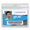 Constructed of durable clear vinyl and features three pop-out eyelets for compatibility with a variety of lanyards, badge reels and clips (sold separately). Fasten this ID badge holder to clothing, bags, and more to keep your hands free.