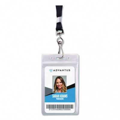 Constructed of durable clear vinyl and features three pop-out eyelets for compatibility with a variety of lanyards, badge reels and clips (sold separately). Fasten this ID badge holder to clothing, bags, and more to keep your hands free.