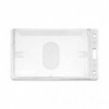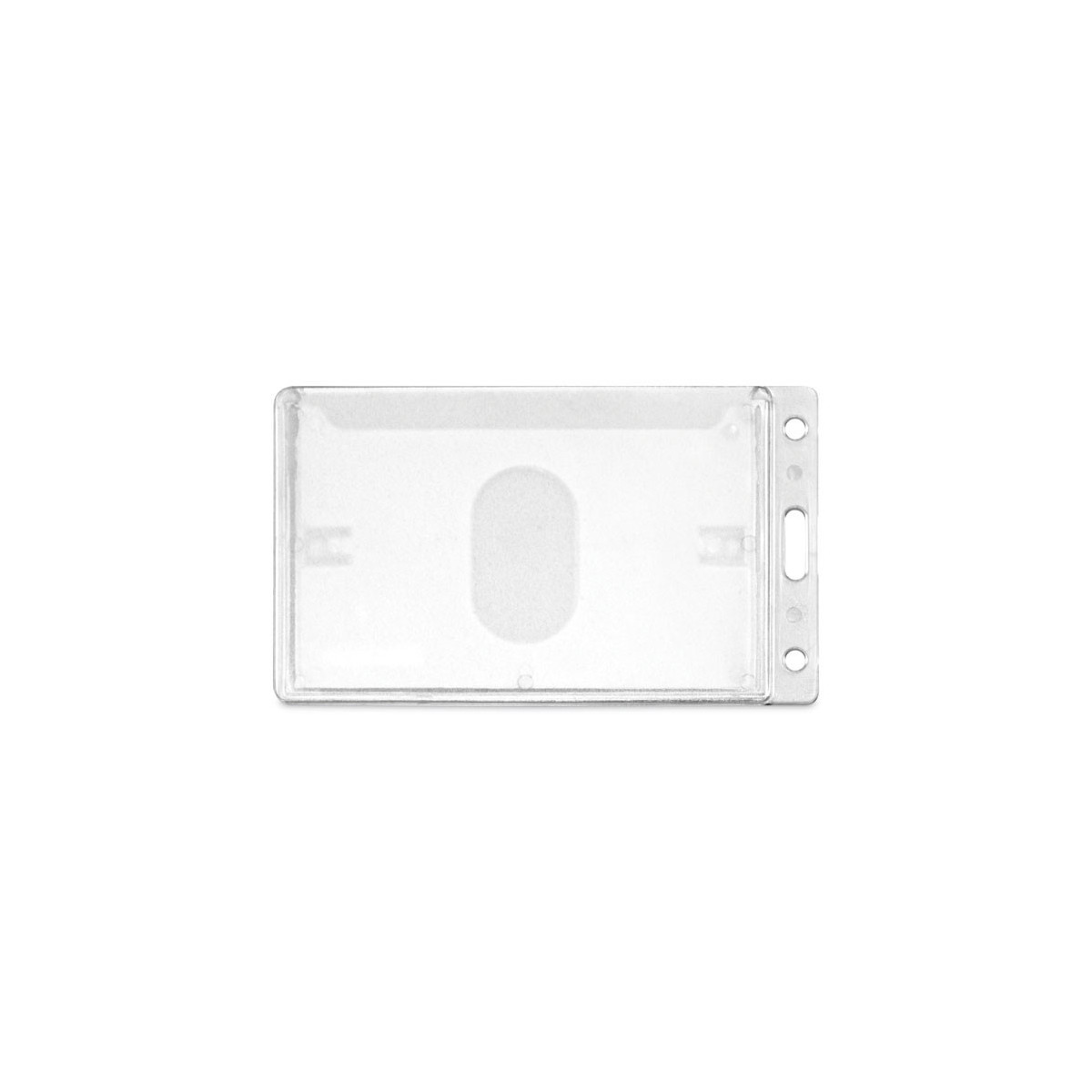 Clear, rigid, molded plastic delivers durability and style. The small compact design keeps keeps your ID card/badge secure. Holds two standard thickness ID or credit cards and features a thumb notch for easy card removal. Frosted holder allows your ID card/badge to be in continual view. Slot and pin holes accommodate lanyards, straps and chains.