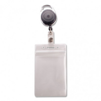 Resealable Badge Holder Combo Pack with Badge Reel, 30" Cord, Vertical, Frost 2.68" x 5" Holder, 2.38" x 3.75" Insert, 10/PK