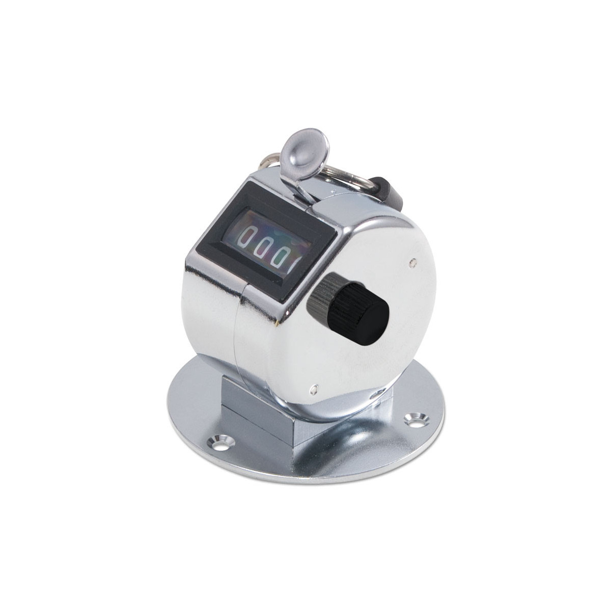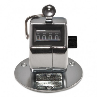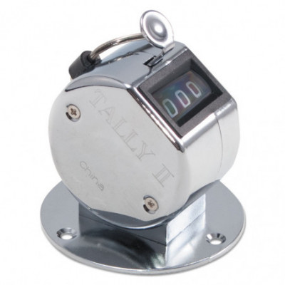 Mount this desk model tally counter to a surface where you need it. Easy to use with a thumb push to advance the count. Counter registers to 9999 and resets to zero. It's curved to comfortably fit the hand and has convenient finger ring; chrome finish.