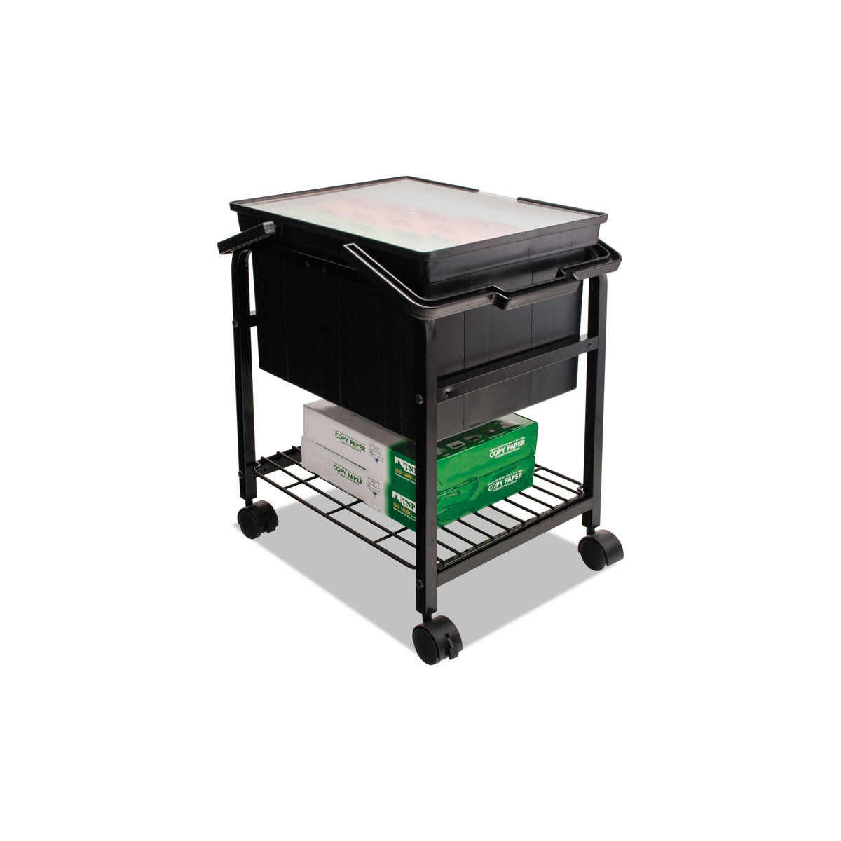Designed to hold heavy files (up to 100 lbs.) without wobbling or flexing. Holds one Advantus Companion Portable File (AVT-TLF-2B, sold separately). Rails adjust to hold data binders and hanging files from 10 5/8" to 16 1/4" wide by 15" high. Sturdy lower rack for additional files, ledger books or reference material.
