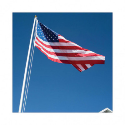All-weather U.S. flag made of 100% heavyweight nylon features sewn stripes and embroidered stars. The white canvas headings are fitted with brass grommets.