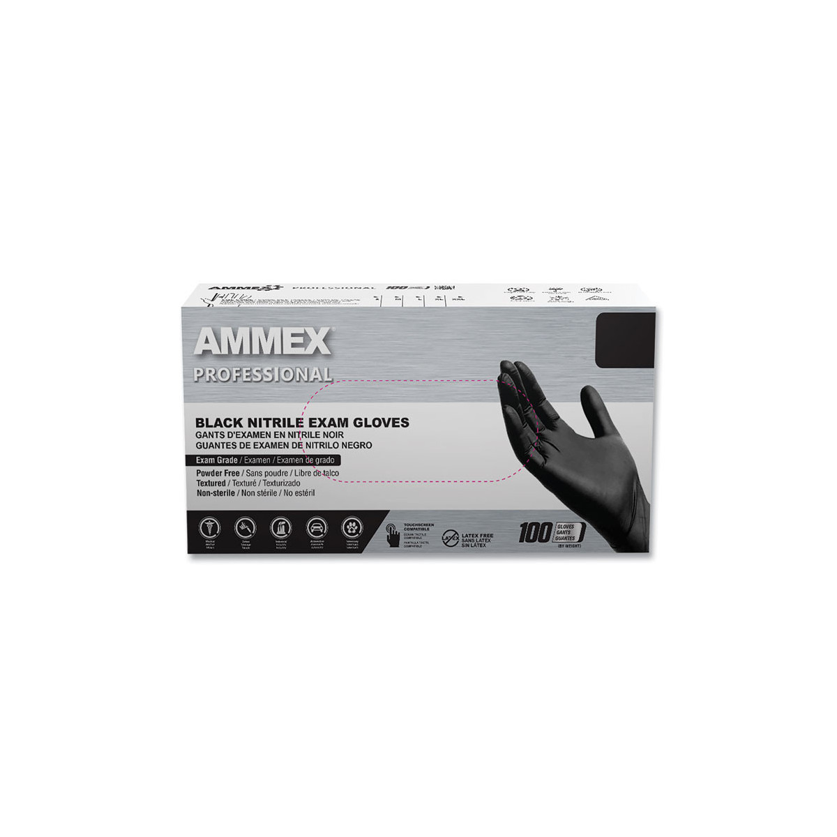 Nitrile Exam Gloves, Powder-Free, Small, 3 mil Thick, 9.5" Long, Black, 100/Box, 10 Boxes/Carton