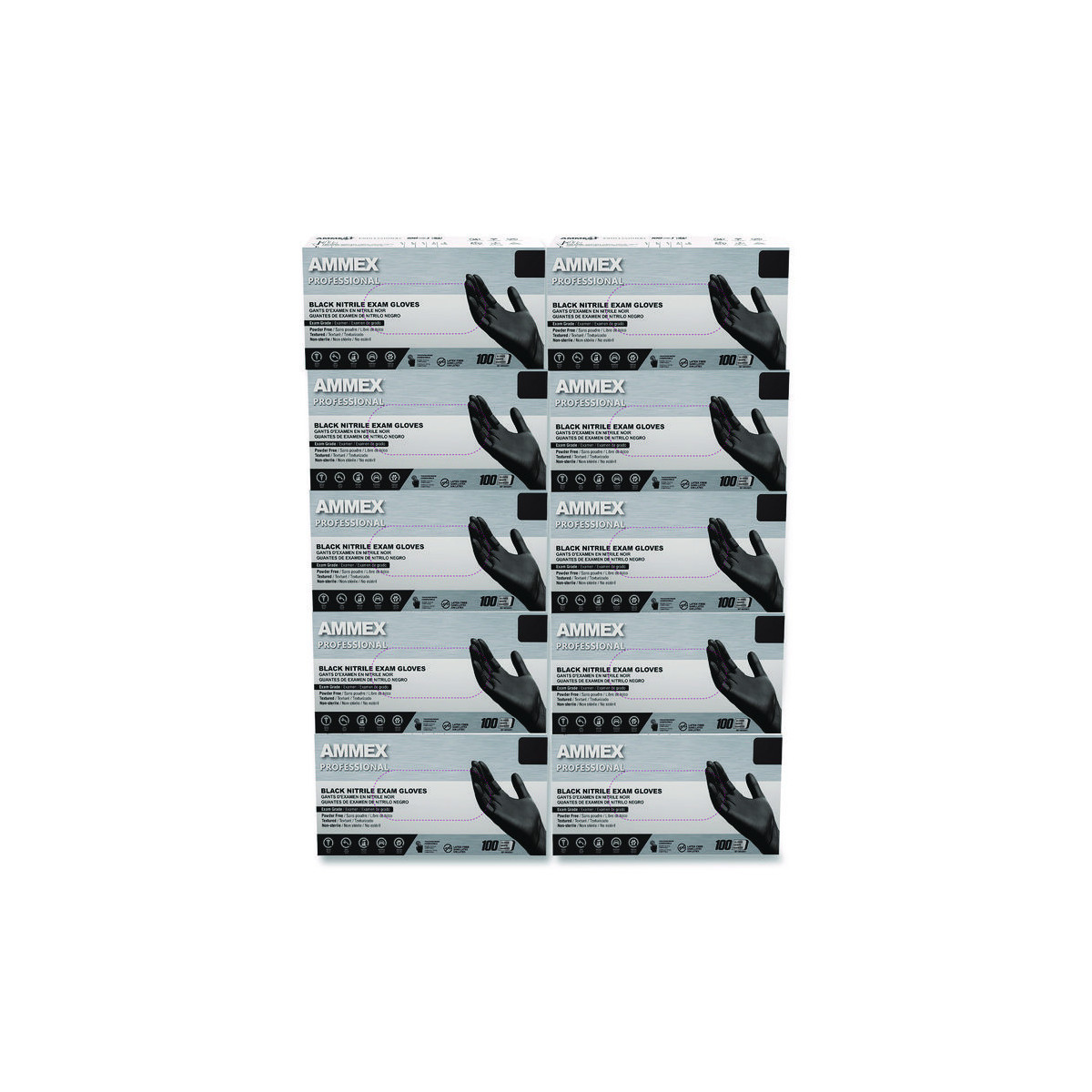 Nitrile Exam Gloves, Powder-Free, Medium, 3 mil Thick, 9.5" Long, Black, 100/Box, 10 Boxes/Carton
