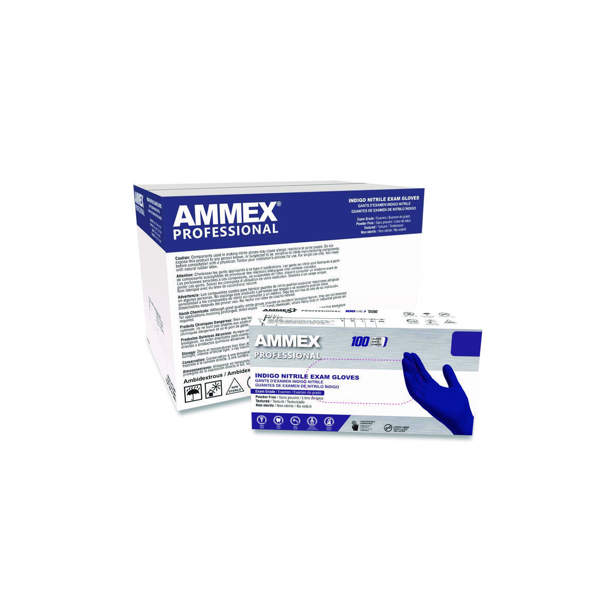 Nitrile Exam Gloves, Powder-Free, Medium, 3 mil Thick, Indigo, 100/Box