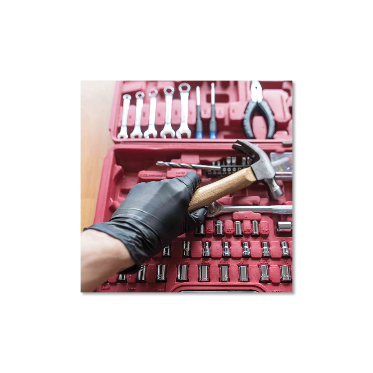 The Gloveworks® by AMMEX® Industrial Nitrile Glove will get as down and dirty as you need. It's the disposable glove that won't quit on you. This premium industrial-grade glove is the perfect combination of strength, dexterity, and comfort. Nitrile has three times the puncture resistance of latex so the glove holds up when working with tools and machinery. This glove offers excellent protection against a long list of common and specialty chemicals and is nearly as elastic as latex, so it conforms to your hand to deliver comfort, a great fit, and a high level of tactile sensitivity. A polymer coating makes it easy to put on the glove as well as to take it off, and since it's powder-free, there's no residue to damage a perfect finish or an adhesive bond. They are also suitable for countless uses around the house, from cleaning to painting to repairs. For the pro who takes on the toughest jobs, it is a perfect fit.