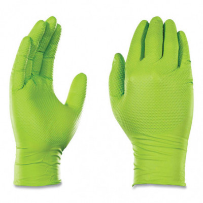 These heavy-duty nitrile gloves feature an aggressive raised diamond texture for a grip that won't slip, wet or dry. Thickness provides strong barrier protection. Resistant to rips, punctures, and abrasions. Latex-free.