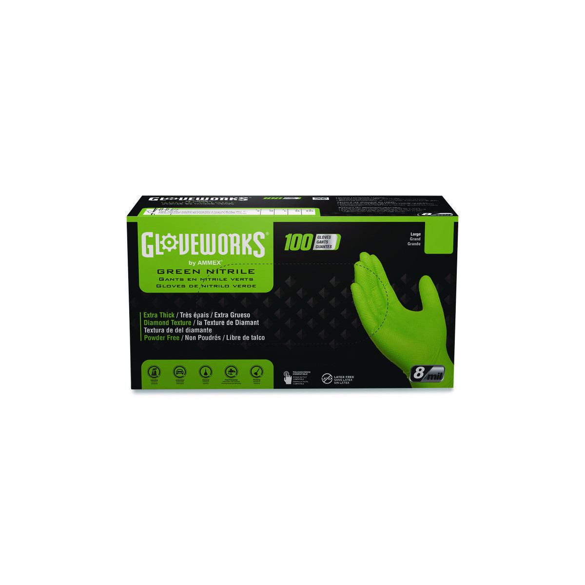 Heavy-Duty Industrial Nitrile Gloves, Powder-Free, XX-Large, 8 mil Thick, 9.5" Long, Green, 100/Box, 10 Boxes/Carton