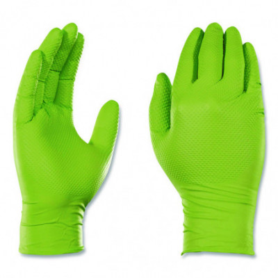 These heavy-duty nitrile gloves feature an aggressive raised diamond texture for a grip that won't slip, wet or dry. Thickness provides strong barrier protection. Resistant to rips, punctures, and abrasions. Latex-free.