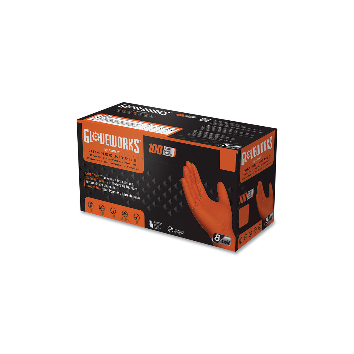 Heavy-Duty Industrial Nitrile Gloves, Powder-Free, Medium, 8 mil Thick, 9.5" Long, Orange, 100/Box