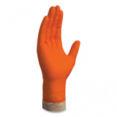 These heavy-duty nitrile gloves feature an aggressive raised diamond texture for a grip that won't slip, wet or dry. Thickness provides strong barrier protection. Resistant to rips, punctures, and abrasions. Latex-free.