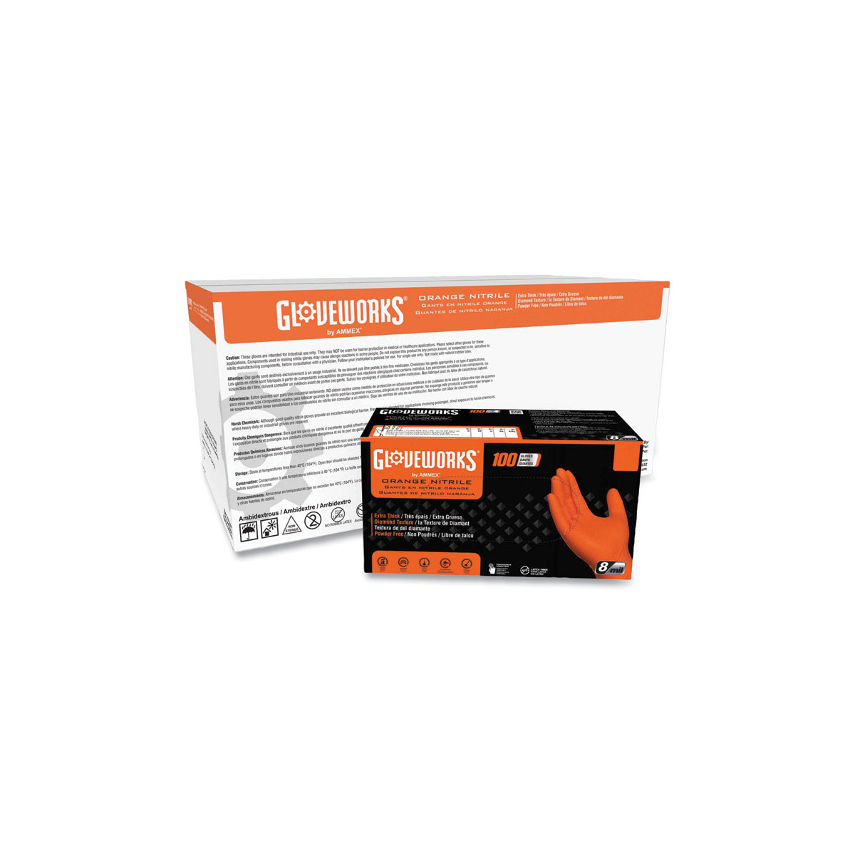 Gloveworks by AMMEX Heavy-Duty Industrial Nitrile Gloves stand up to the toughest jobs. They feature Raised Diamond Texture (RDT) which creates 60% more surface area for an exceptional liquid channeling grip. RDT provides a comfortable fit: fewer contact points with the skin increase airflow and reduce sweating vs. non-textured gloves.