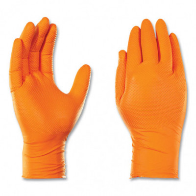 These heavy-duty nitrile gloves feature an aggressive raised diamond texture for a grip that won't slip, wet or dry. Thickness provides strong barrier protection. Resistant to rips, punctures, and abrasions. Latex-free.