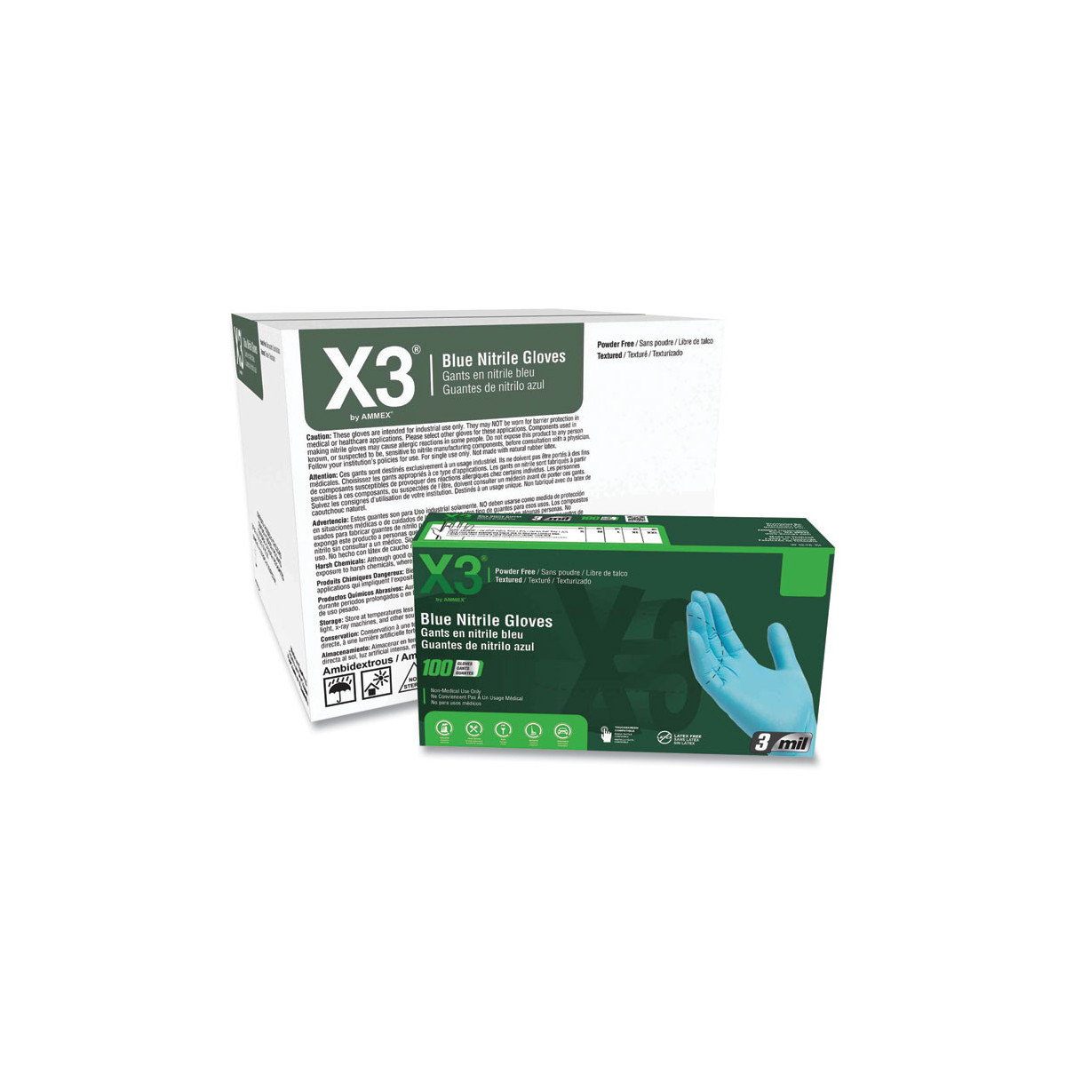 X3® Industrial Nitrile Gloves are industrial grade, powder-free, gloves that provide barrier and chemical protection suitable for tasks in food service, automotive, janitorial and other applications. General-purpose nitrile combines strength, dexterity, comfort, and value in one industry-standard glove. Color projects a professional look.