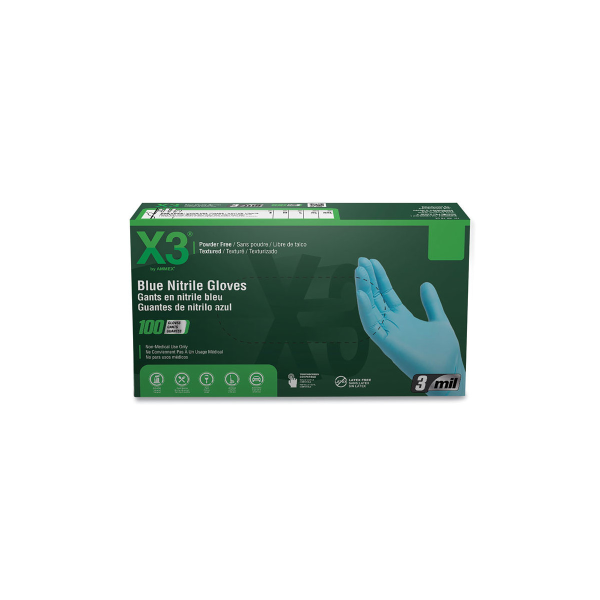 X3® Industrial Nitrile Gloves are industrial grade, powder-free, gloves that provide barrier and chemical protection suitable for tasks in food service, automotive, janitorial and other applications. General-purpose nitrile combines strength, dexterity, comfort, and value in one industry-standard glove. Color projects a professional look.
