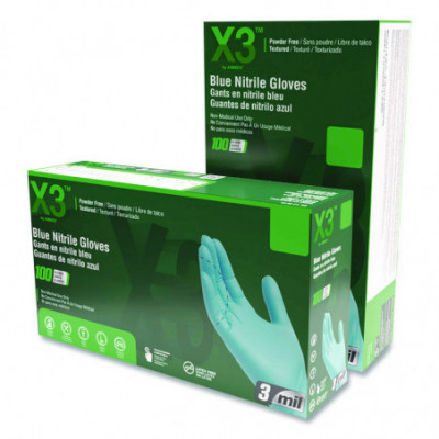 X3® Industrial Nitrile Gloves are industrial grade, powder-free, gloves that provide barrier and chemical protection suitable for tasks in food service, automotive, janitorial and other applications. General-purpose nitrile combines strength, dexterity, comfort, and value in one industry-standard glove. Color projects a professional look.