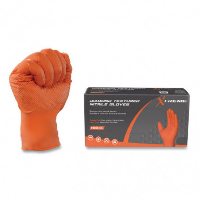 Xtreme by AMMEX® DT Industrial Nitrile Disposable Gloves are diamond textured for an enhanced grip on tools and machinery. Their hi-vis orange color stands out in dark environments to keep hands in plain sight. At 6 mils thick, Xtreme gloves resist punctures as well as permeation by chemicals. They are good for a variety of uses, from automotive to food processing, janitorial/sanitation to manufacturing and more.