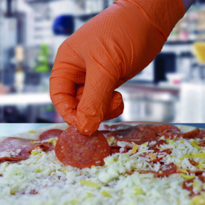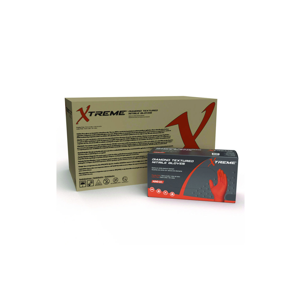 Xtreme by AMMEX® DT Industrial Nitrile Disposable Gloves are diamond textured for an enhanced grip on tools and machinery. Their hi-vis orange color stands out in dark environments to keep hands in plain sight. At 6 mils thick, Xtreme gloves resist punctures as well as permeation by chemicals. They are good for a variety of uses, from automotive to food processing, janitorial/sanitation to manufacturing and more.