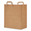 Kraft paper bag with handles for easy carrying. Durable construction for reliable containment. Flat bottom keeps items secure and allows bag to stand on its own.