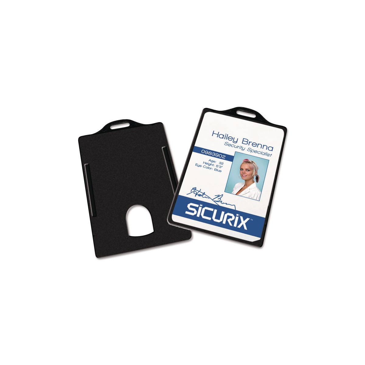 Convenient card holder/dispenser holds ID cards up to .3mil thickness—perfect for providing easy access to ID cards, credit cards and business cards. Each card holder has a die cut hole in the back so it attaches easily to card reels, lanyards and chains. Holds approximately 30 cards.