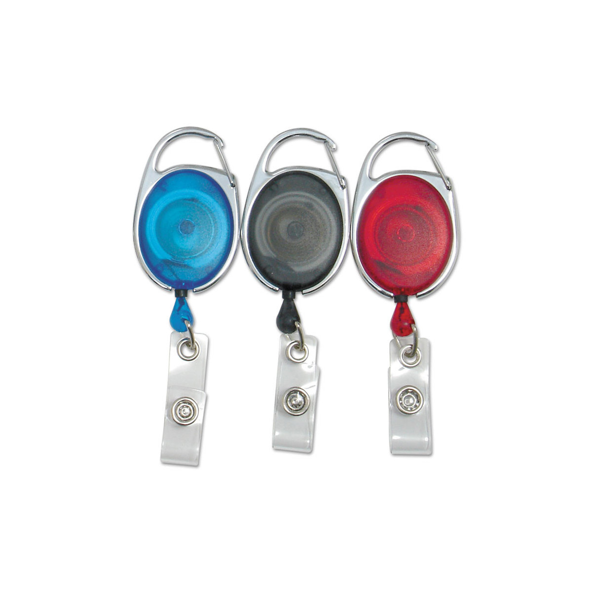 These compact, oval, plastic card reels attach to your ID or security badge holder for convenient displaying. Quick clip attaches easily to a belt, pocket or purse, ensuring that your ID card stays securely on your person at all times. Extends 30 inches when needed and retracts automatically for ease of use.