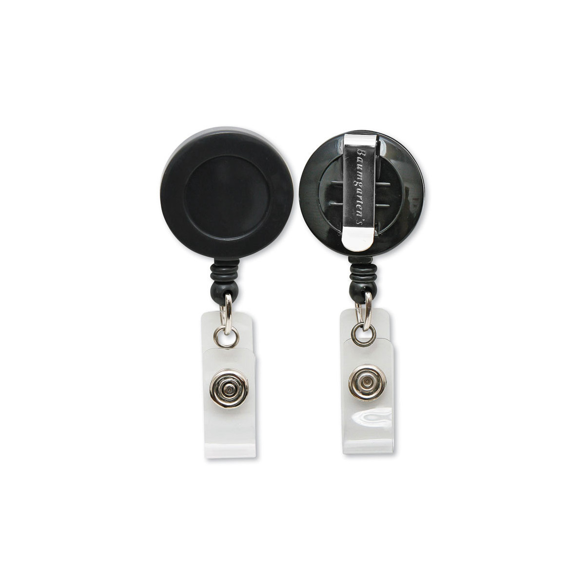 These compact, round, plastic card reels are convenient for displaying your ID or security badge. Badge reel attaches easily to any ID card or badge holder. Belt clip fastens to belts, backpacks or purses so you can keep your ID with you at all times. Extends 30 inches when needed and retracts automatically.