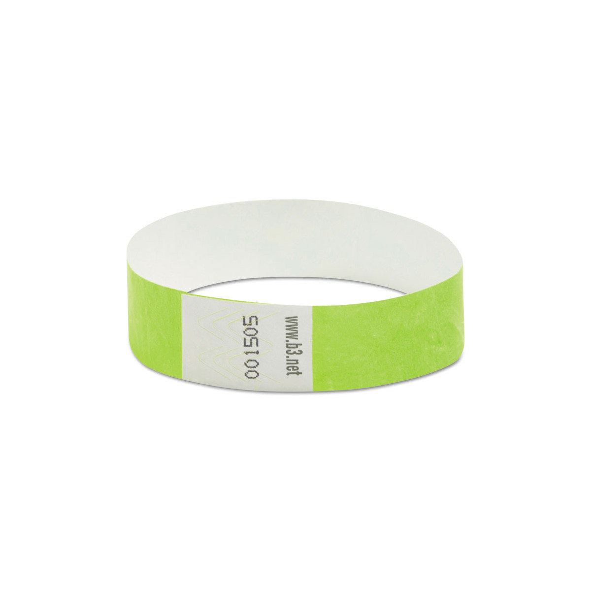 Security Wristbands, Sequentially Numbered, 10" x 0.75", Green, 100/Pack
